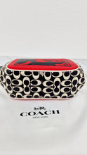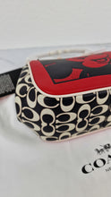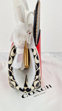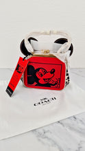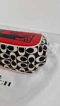 This is the absolutely adorable limited edition Coach kisslock bag in smooth red, chalk and black leather with Mickey Mouse ears from the Coach Disney Mickey Mouse x Keith Haring collection. It features a Keith Haring retro Mickey Mouse picture on the front and has Coach signature on the sides and bottom. The lining is smooth oxblood leather. It has two large compartments and inside one is a small flat pocket.