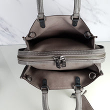 This is the beautiful Rogue 31 in Heather grey suede. This one stands out from the classic Rogue by being full suede on the outside with leather trims and soft leather lining in the outer pockets. The hardware is black copper.