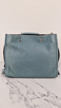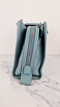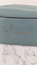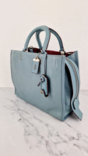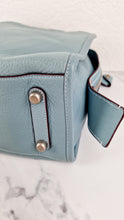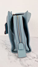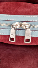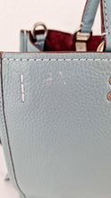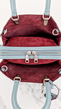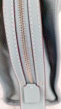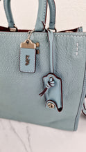 This is a the beautiful Rogue 31 in the color steel blue with nickel colored hardware - you don't see this color hardware very often on Coach bags. Inside the two open pockets, the classic suede lining is oxblood/burgundy.