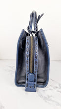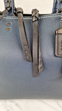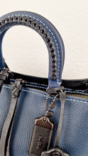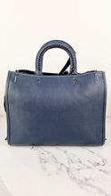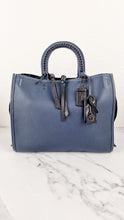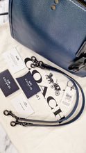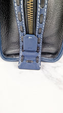 This is the gorgeous and luxurious Coach Rogue 31 in a rare and hard to find limited edition. The color is Prussian Blue and it has black suede lining in the outer pockets and black clochette, hangtag, sides and straps giving it a colorblock look. It features the beautiful whiplash details in black around the zipper and on the handle making it stand out from the classic Rogues. This model is highly sought after and can be hard to come by these days as it was only produced in 2016.