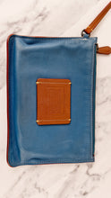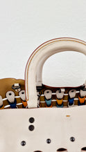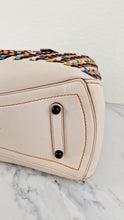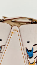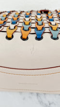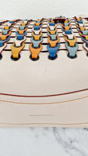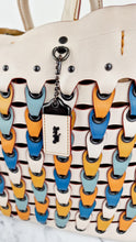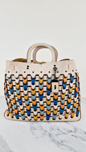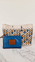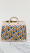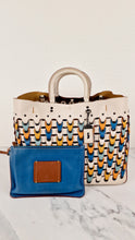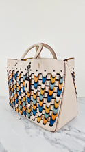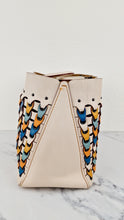 This is the beautiful Rogue Tote in their amazing link edition in beautiful chalk smooth leather with colorblock blue and yellow links. It has light saddle leather lining.