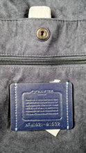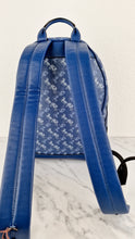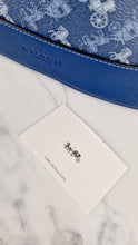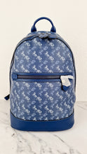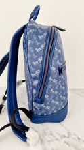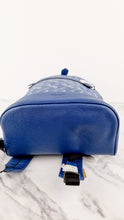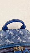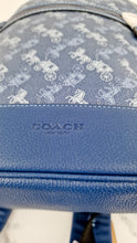 This is the amazing Coach Barrow Backpack featuring their classic Horse & Carriage print in a beautiful blue color. It consists of a large zipped main compartment with multiple small pockets inside including a safe pocket for a 12" laptop and a zipped pocket on the front. It has comfortable padded and adjustable straps.