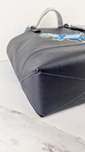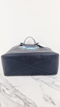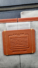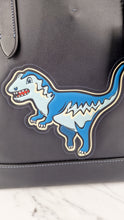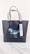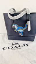 This is the Coach Gotham Tote from the luxurious 1941 line in dark navy blue smooth glovetanned leather featuring Rexy, the Coach dinosaur mascot, in beautiful blue colors.