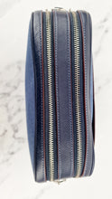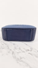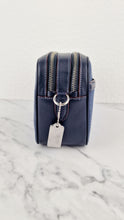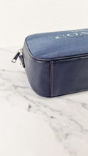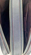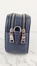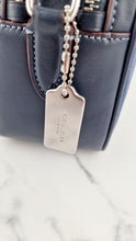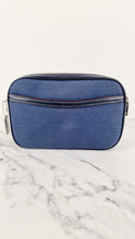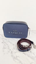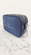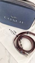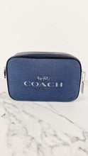 This is the super lovely Coach Jes Crosbody bag in blue denim and navy blue leather with silver tone hardware and large logo at the front. The bag consists of two zipped pockets with a slip pocket in one of them and has a slip pocket on the back. The bag has a really good size with room for all the essentials and then some and the long strap is adjustable.