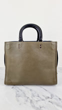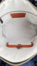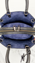This is the gorgeous Rogue 31 in a beautiful dark green color with black handles and details and dark blue suede lining in the outer pockets.