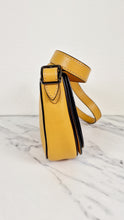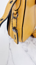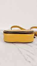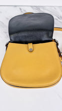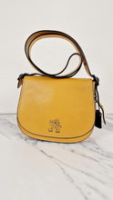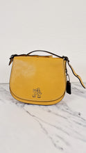 This is one of the adorable pieces from the Disney X Coach collection featuring Mickey Mouse. This Saddle 23 is a limited edition crafted in smooth glovetanned leather in the 1941 line. It is a beautiful vibrant yellow with gunmetal hardware and smooth black leather lining. It features and adorable sketch of Mickey Mouse on roller skates on the front and on the back you see Mickey from the back as well - such a fun detail!