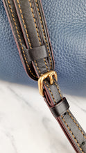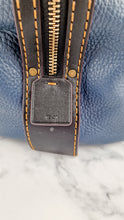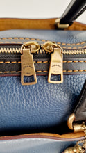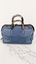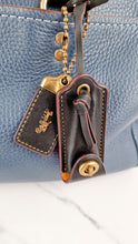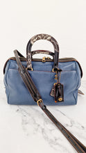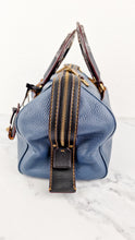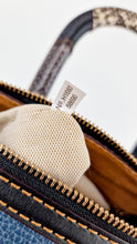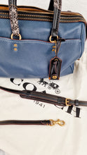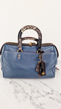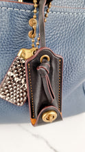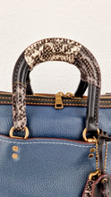 This is the amazing Coach Rogue Satchel from the 1941 collection in a hard to find limited edition with patchwork snakeskin handles. Like the classic Rogue, this features a zipped center compartment with two open pockets on the side with suede lining and two sturdy grab handles. It also has the 1941 hangtag and matching clochette. It comes with a long strap for shoulder or crossbody wear which is detachable and has an additional bit of leather on it making it more comfortable on the shoulder. This one is all suede inside and has snakeskin on the back of the hangtag as well. It is in the beautiful color Dark Denim blue with black accents - an amazing combination!